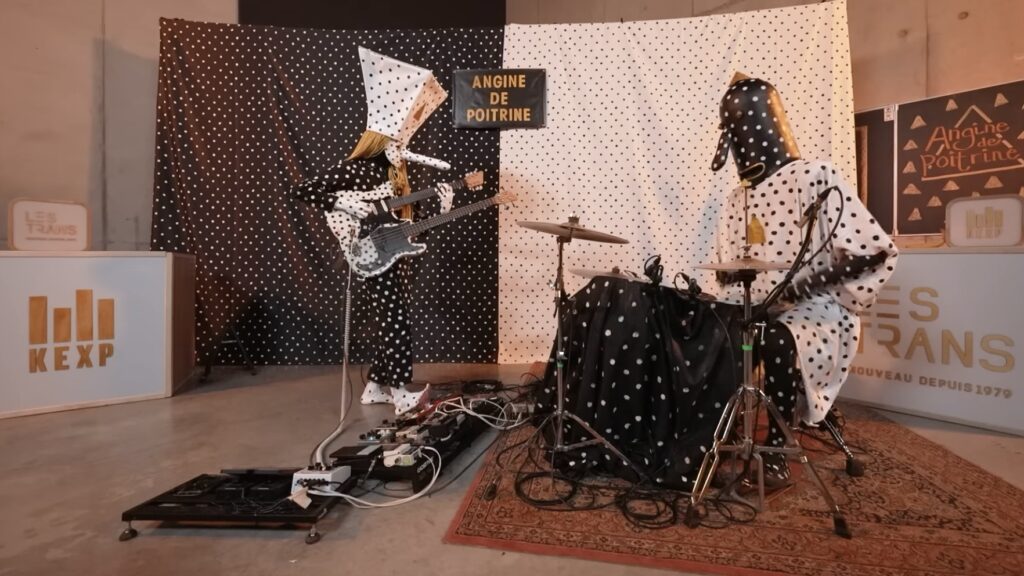 Angine de Poitrine, the mysterious math rock duo who has taken the Internet by storm, have kept their identities secret until now. The secret slipped this week out after the drummer was caught swearing in Plautdietsch after a slight mishap.