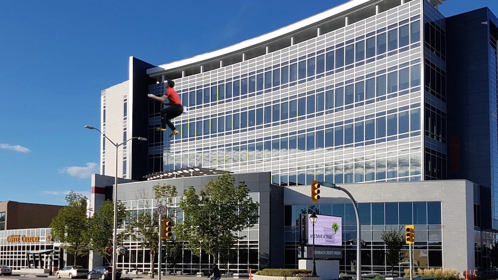 World-renowned climber Alex Honnold has just accomplished the greatest feat of his career—free soloing the credit union building in Steinbach.