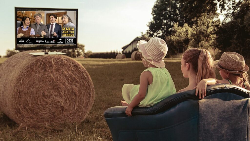 The MBEMMMCGC Church of Winkler has allowed a “temporary dispensation” to allow parishioners to buy a used TV from the thrift store, prop it up on a bale in the yard, and watch that new Maria and the Mennos show.