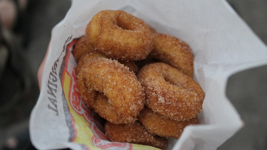 “It all started at the Niverville Fair last weekend. I think we ate 15 buckets on Saturday alone,” said Mrs. Wiebe, licking the cinnamon and sugar off her fingers. “Then we changed things up and spent this entire weekend lining up for mini donuts over in Steinbach.”