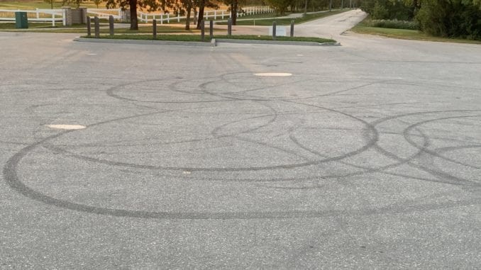 Pastor Dave pulled up onto the lot this morning for his marriage counselling sessions with the Thiessens only to find that the entire lot was covered with mysterious black circles and the whole area smelled a bit like burning rubber.